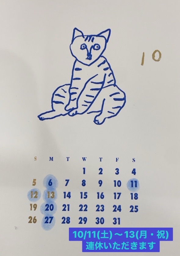 こんにちは! 少し早いですが9月のお休みになります。 8月のご予約が現時点でいっぱいとなっており大変ご迷惑おかけしております。 キャンセルなどが出る時もありますのでLINE公式でご連絡頂けると幸いです。 まだまだ暑い日が